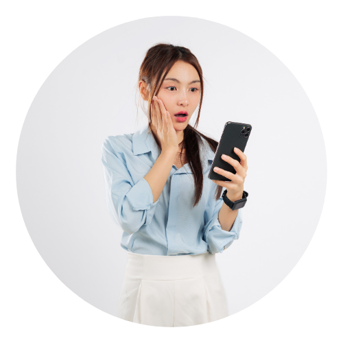 Mulher asiática está olhando para o celular com o semblante preocupado, pois sofre de ansiedade digital..